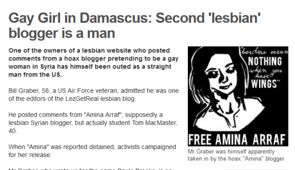 And then there has been instances of deception. The worst was the case of the Gay Girl in Damascus, who went from being a global source on what was going on in Syria through her blog to…