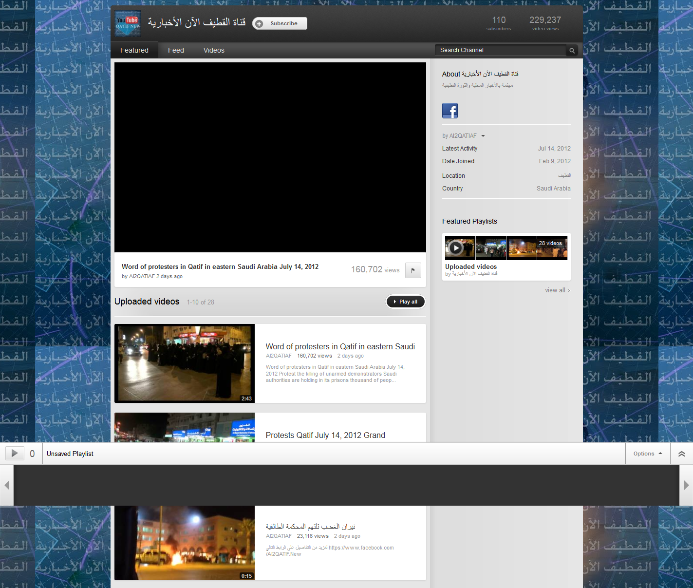 The above video has been viewed 160 thousand times in the space of two days. What is just as remarkable is the channel where this is hosted on Youtube. The channel’s name is Qatif News Channel, and videos are uploaded daily.