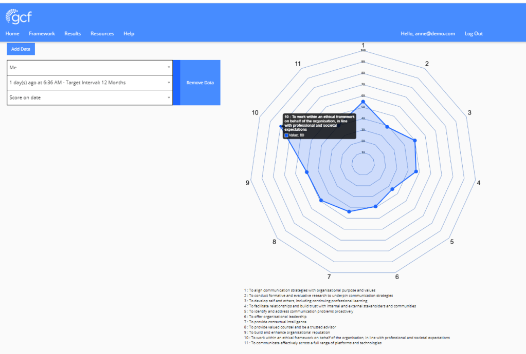 Now, what Anne and the University of Huddersfield/the Global Alliance have also done is make available a brilliant tool that lets communicators assess themselves and their teams against the framework. It’ll allow you to look at your skills, see your strengths and weaknesses, and understand where you need to develop and then re-assess yourself to see how you’re progressing.