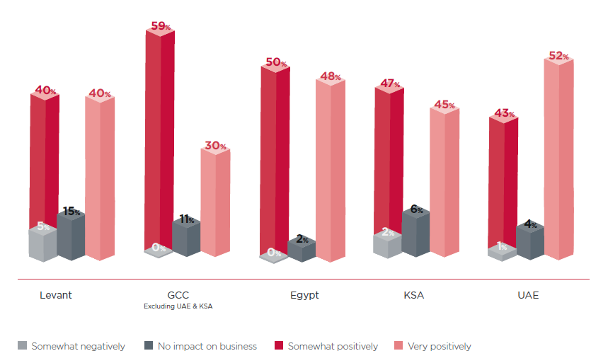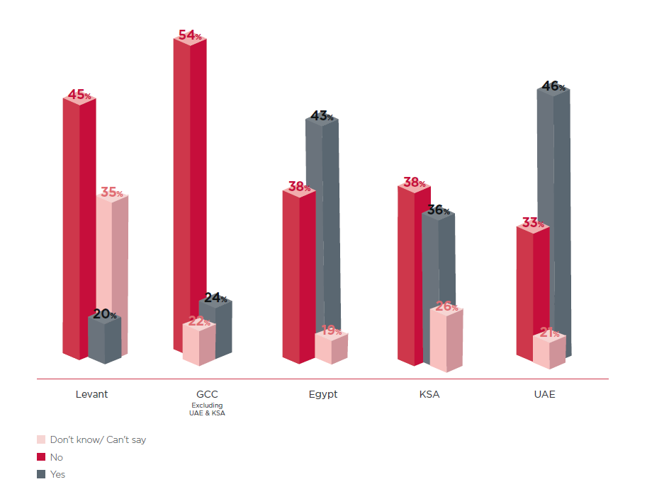 Executives were also asked if CSR has become important (no surprises here, it has), as well as if they intend to keep up their CSR activities in 2022 – Egyptian, Saudi and the UAE executives said they would do more, while Levant and GCC executives said they’d do the same.